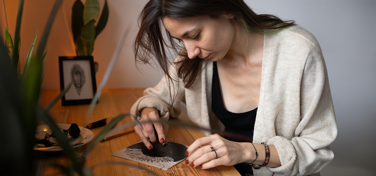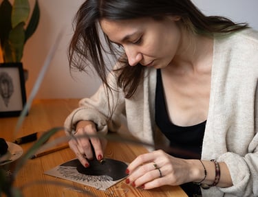I discovered linocut printing a few years after finishing art school. I found myself drawn to this meticulous, slow process, full of mindful and deliberate gestures. It feels deeply calming to me - almost like a form of meditation.